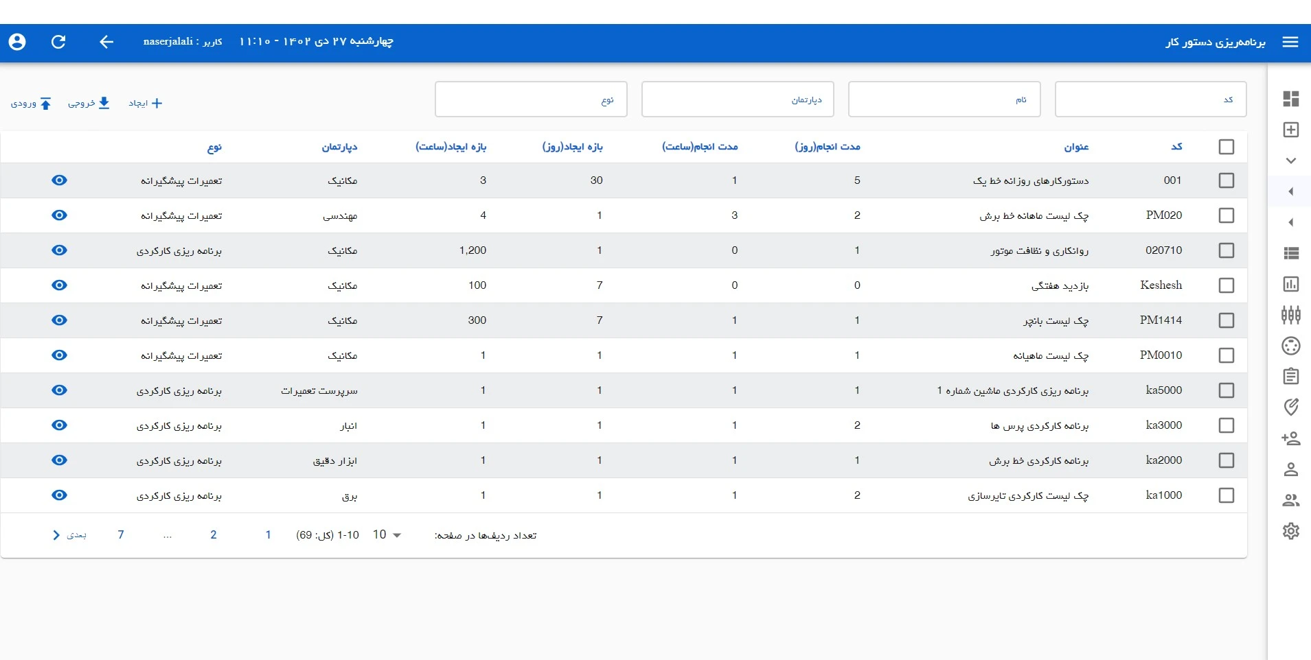 - امکان مدیریت قطعات یدکی در دستورکار یا گزارشات انجام فعالیت تعمیراتی
