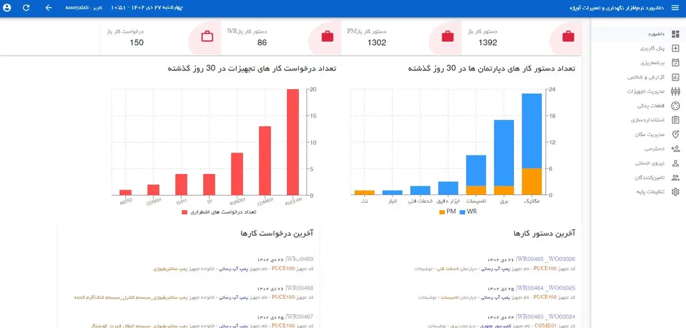 دمو نرم افزار نگهداری و تعمیرات CMMS